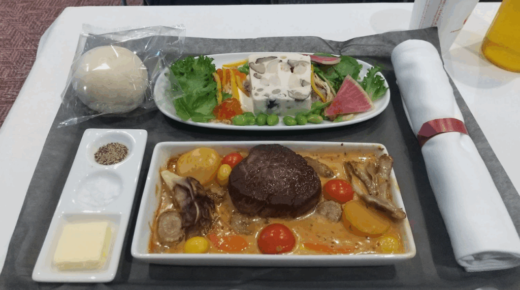 ホノルル線のビジネスクラスで提供されている機内食を実食。