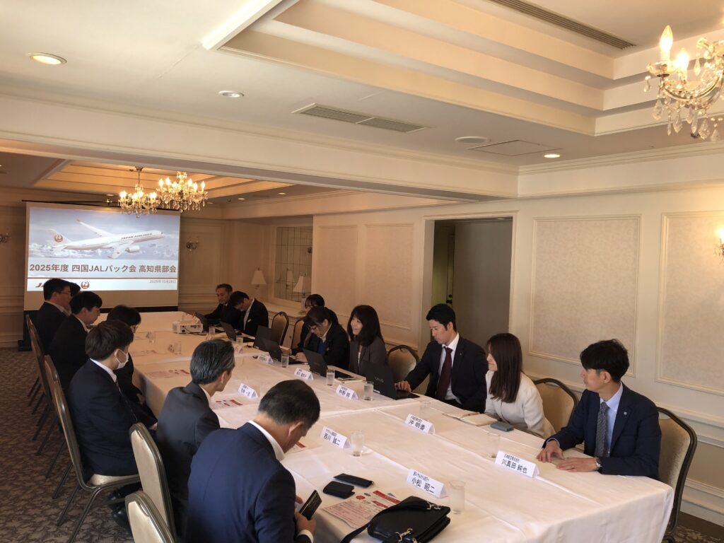 日本航空高知/徳島支店からは各路線の状況共有をはじめ、エリアに特化した施策、各種取り組みのご紹介をいたしました。ジャルパックからは販売概況、四国地区関連商品のご紹介をはじめ商品戦略等に関して意見交換を実施いたしました。意見交換の中では、二次交通の問題、四国周遊需要の取り組み、旅館系施設の支援他多岐に渡る意見がでました。